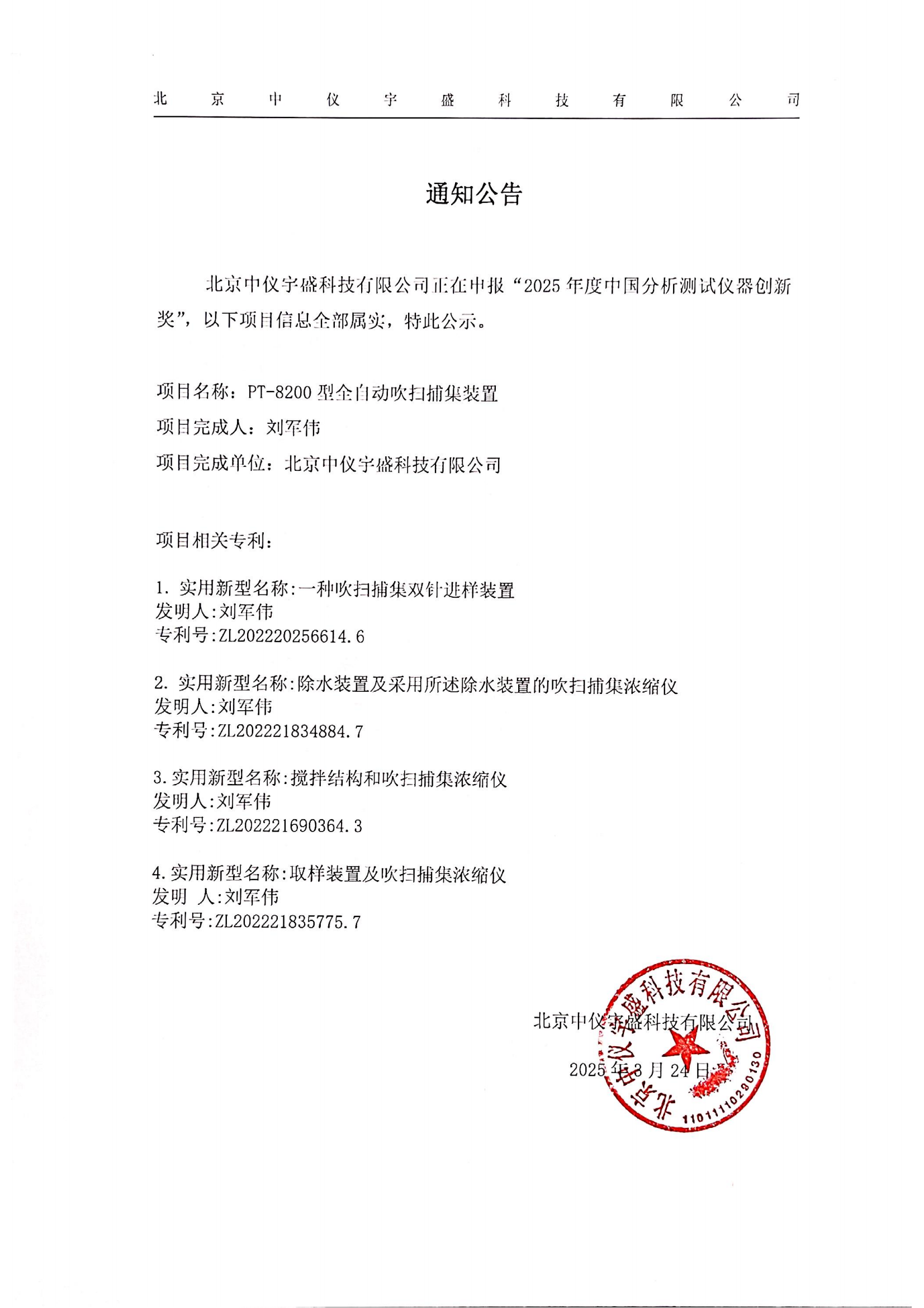 • 關(guān)于北京中儀宇盛申報“2025年度中國分析測試儀器創(chuàng)新獎”的 2025-03-24